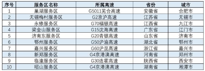 表 春節(jié)較繁忙服務(wù)區(qū) (全文圖表均來自交通運(yùn)輸部路網(wǎng)監(jiān)測(cè)與應(yīng)急處置中心官方微博)