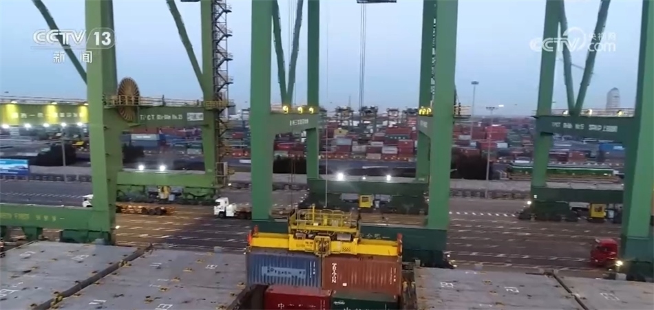 總臺記者 李青音:從卸船再到裝車、出閘,這個過程僅僅需要20分鐘就可以完成。完成了這一切,車?yán)遄訉㈦x開碼頭,全速赴往下一站。