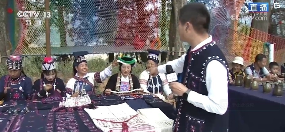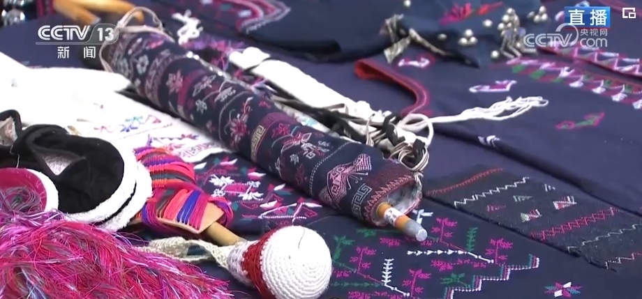 “過春節(jié),穿新衣?!泵褡宕汤C一針一線繡出來(lái)了山川湖海、日月繁星,不僅有帽子、衣服,還能做成杯墊、雨傘等,搭配起來(lái)都很好看。