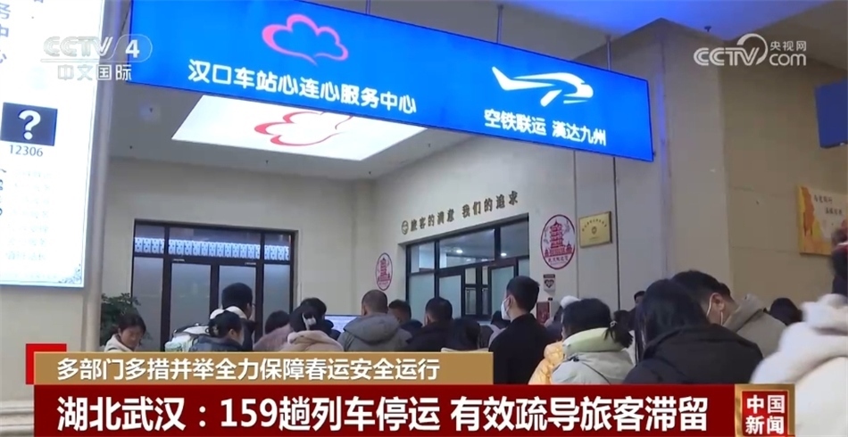 受雨雪天氣影響,截至3日上午,湖北武漢159趟列車停運,部分列車出現(xiàn)晚點,旅客出行受到較大影響。為避免出現(xiàn)旅客滯留的情況,漢口火車站增開了安檢通道,做好引導服務(wù),同時啟用臨時候車區(qū)域,為列車晚點的旅客提供舒適的候車環(huán)境。同時,為了應(yīng)對節(jié)前出行高峰,武漢鐵路部門還通過強化空鐵聯(lián)運,為有換乘飛機需求的旅客提供便利。