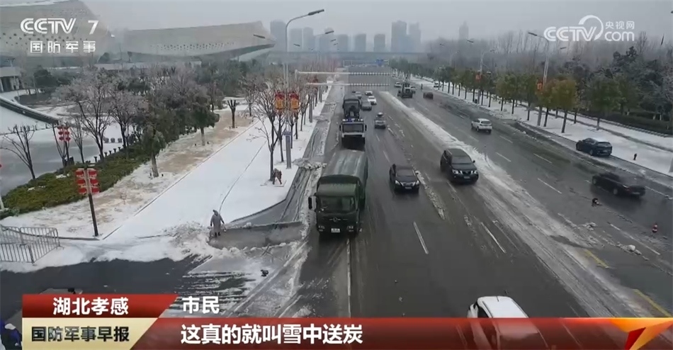 央視網(wǎng)消息:受連日強冷空氣影響,中部地區(qū)出現(xiàn)大范圍寒潮,湖北省孝感市因雨雪天氣,導(dǎo)致道路結(jié)冰濕滑,城市道路交通嚴(yán)重受阻。武警孝感支隊緊急出動80多名官兵,支援地方破冰除雪,為受困車輛提供幫助,確保城市重點路段和主干道暢通。