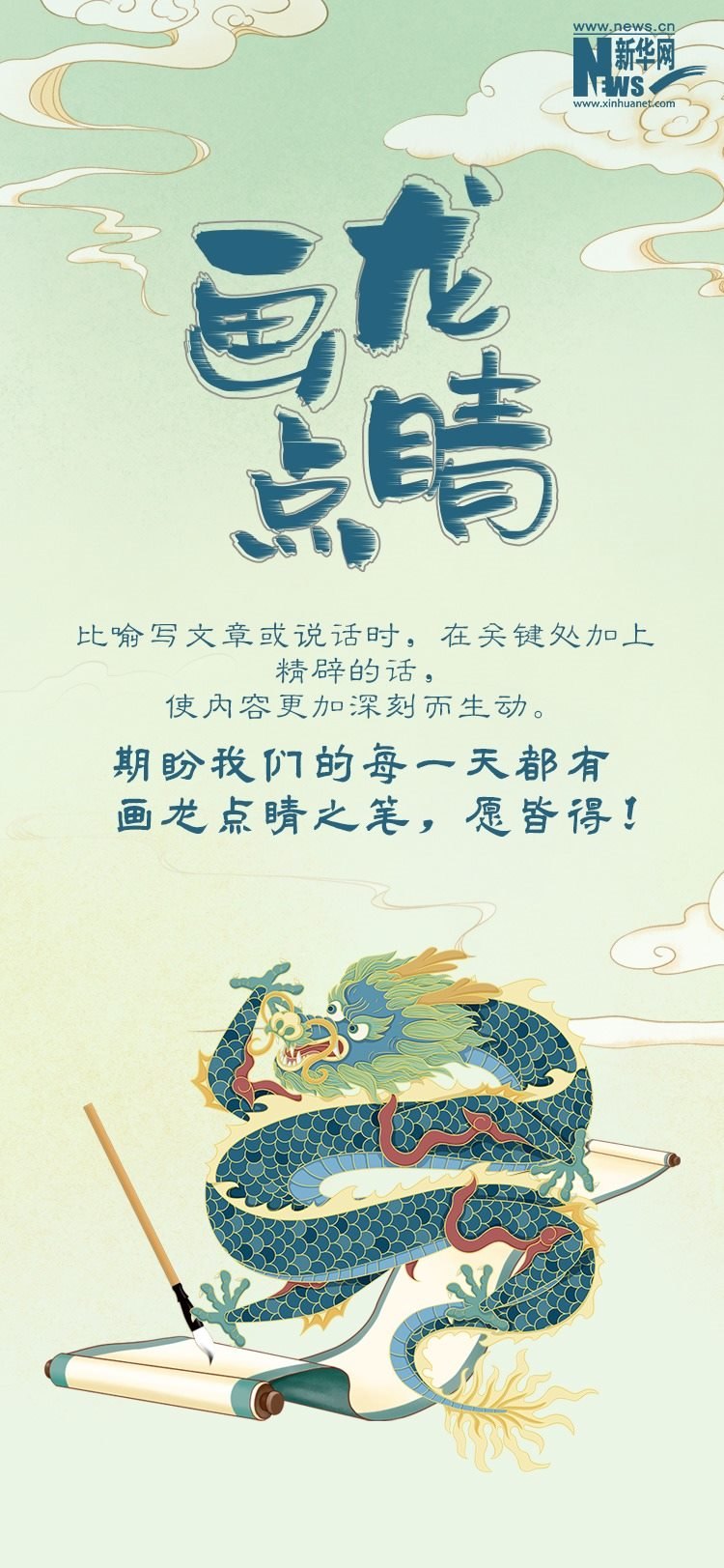 2024年是農歷甲辰龍年?!褒垺痹谥腥A民族心目中有著重要地位,被視為吉祥、權威和神圣的象征。在歷史發(fā)展長河中,“龍”逐步匯聚起豐富的文化內涵與美好寓意,成為人們精神信仰和文化生活的重要組成部分。春節(jié)期間,《尋“龍”記》帶您領略博大精深的中華“龍”文化,本期推出一組寓意深遠、意蘊豐富的含有“龍”字的成語,為新的一年注入更多的美好祝愿。