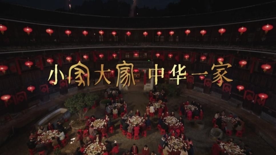影片的結(jié)束語是點(diǎn)睛之筆:“我們相稱相謂,只因相愛相親。小家大家,中華一家。” 使用了金文、篆書、楷體三種不同時(shí)期的字體展現(xiàn)一句話里的三個(gè)“家”字,巧妙地把數(shù)千年來中華傳統(tǒng)文化中“家文化”的源遠(yuǎn)流長(zhǎng)、傳承至今之意蘊(yùn)含其中,將家的形式與家的內(nèi)涵完美地融合在一起,既表達(dá)了中國(guó)人對(duì)家的眷戀與倚賴,也體現(xiàn)了對(duì)中華大家庭的熱愛與自豪。