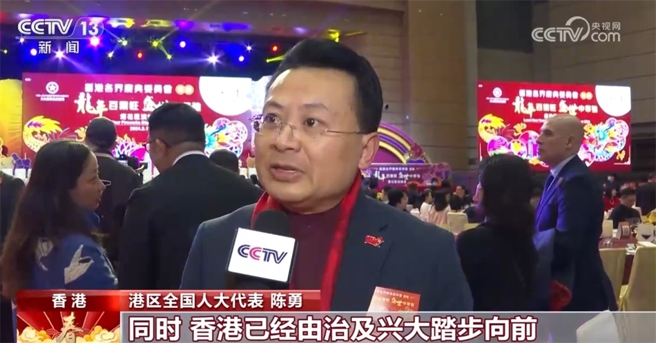 港區(qū)全國人大代表 陳勇:很多香港的朋友到內(nèi)地(或)留在香港共度一個歡慶的龍年,同時,香港已經(jīng)由治及興大踏步向前,同時還助力強國建設和民族的復興。