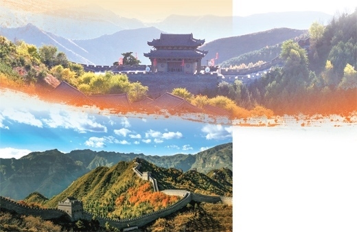 上圖:山西雁門(mén)關(guān)長(zhǎng)城。下圖:秋日的天津黃崖關(guān)長(zhǎng)城,色彩斑斕。王金一攝
