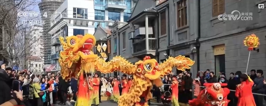 在上海的大街小巷,舞龍舞獅、光影秀等各類新春活動(dòng)陸續(xù)登場(chǎng),讓市民游客感受龍年的歡騰圖景。一大早,隨著鑼鼓聲激昂開場(chǎng),一條金龍和兩頭活潑的醒獅在上海市茂名北路威武亮相。龍獅團(tuán)成員們舞動(dòng)一條長(zhǎng)約30米的巨龍?jiān)诮质猩洗┧笥巫撸瞬簧偈忻裼慰婉v足觀看。