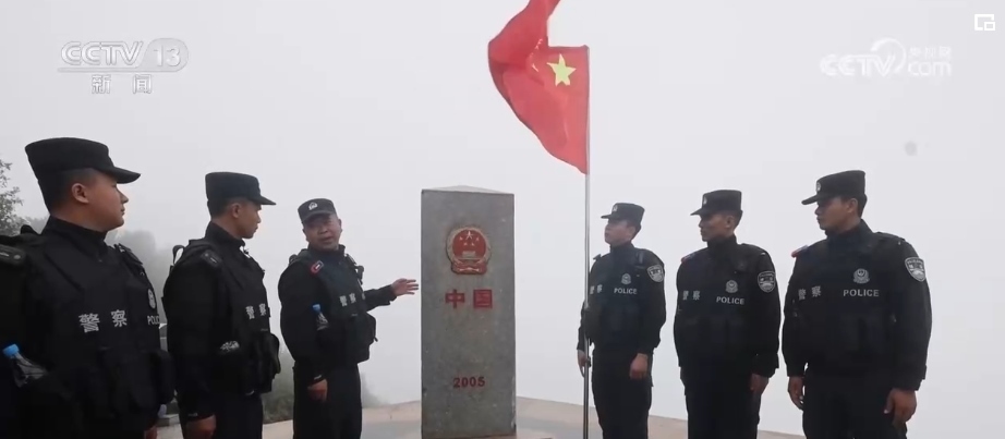 經(jīng)過3個(gè)多小時(shí)的車巡,爬上4260級(jí)的階梯棧道,民警們到達(dá)了中越0號(hào)界碑。