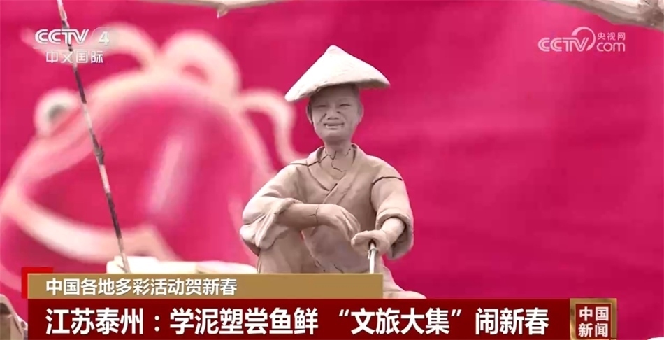 春節(jié)期間,江蘇泰州興化市舉辦了新春“文旅大集”活動(dòng)。在現(xiàn)場,除傳統(tǒng)花船、舞龍等民俗表演外,當(dāng)?shù)啬嗨芊沁z傳承人還帶來了蟠龍、漁船、漁具等雕塑作品,游客在老師們的指導(dǎo)下也學(xué)起了雕刻泥塑。此外,大集上還能品嘗到新鮮水產(chǎn)品加工成的魚圓、魚頭湯,讓大家“年年有余”,圖個(gè)好彩頭。
