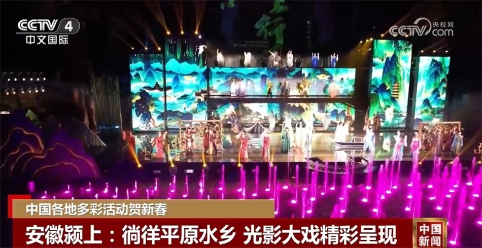 在管仲故里安徽潁上縣,八里河景區(qū)裝扮一新,新增的夜游項(xiàng)目結(jié)合當(dāng)?shù)厮Y源優(yōu)勢和文化元素,為游客打造流光溢彩的光影大戲。