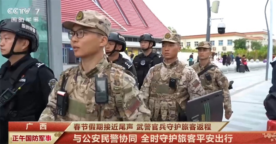 央視網(wǎng)消息:2月16日是農(nóng)歷大年初七,春節(jié)假期接近尾聲,大家也陸續(xù)踏上了返程旅途。各地武警官兵堅(jiān)守執(zhí)勤崗位,多措并舉守護(hù)旅客返程安全。