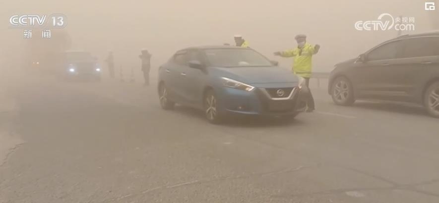 除了風(fēng)吹雪,新疆部分地區(qū)還出現(xiàn)了沙塵暴天氣。在新疆克州烏恰縣,17日,當(dāng)?shù)赝话l(fā)沙塵暴,在烏恰縣國道314部分路段能見度不足100米,一名交警一邊手扶車身,一邊努力睜眼辨別路況,在8級狂風(fēng)沙塵中引導(dǎo)車輛駛出危險區(qū)域。據(jù)了解,此次沙塵天氣一直持續(xù)至2月18日中午12時,當(dāng)?shù)亟痪簿戎焕к囕v一百多輛。