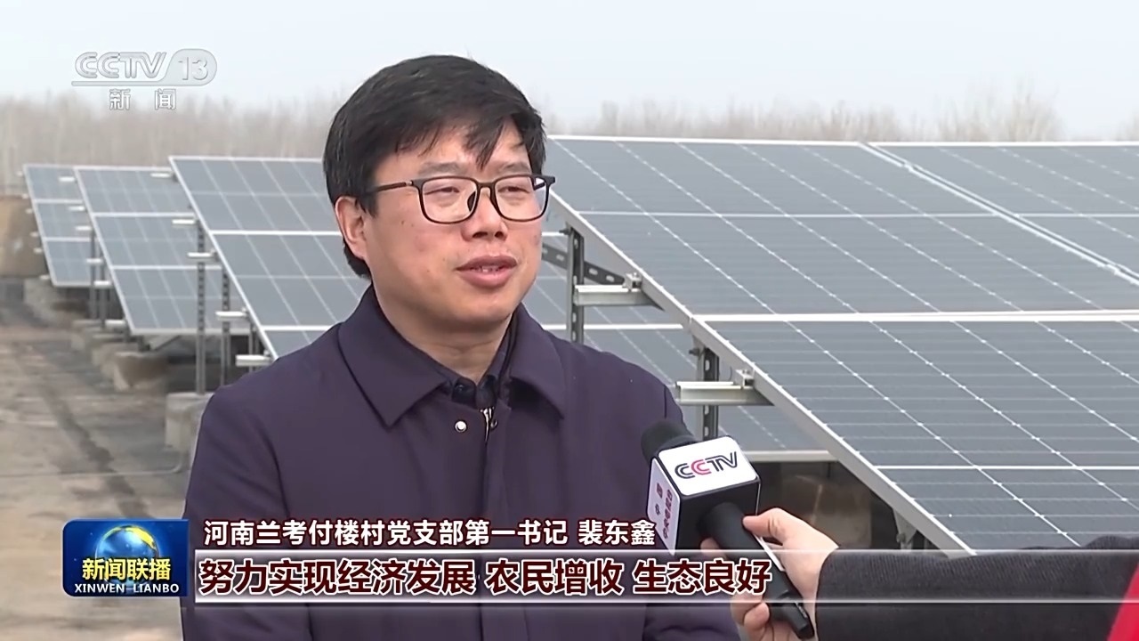 河南蘭考付樓村黨支部第一書記 裴東鑫:習(xí)近平總書記要我們?cè)诰G色發(fā)展中,努力實(shí)現(xiàn)經(jīng)濟(jì)發(fā)展、農(nóng)民增收、生態(tài)良好。我們大力實(shí)施了整個(gè)村莊的零碳化改造?,F(xiàn)在我們?nèi)迥旯夥l(fā)電量超過120萬度,完全滿足我們整個(gè)村子的用電需求,我們村集體一年增收十幾萬元。