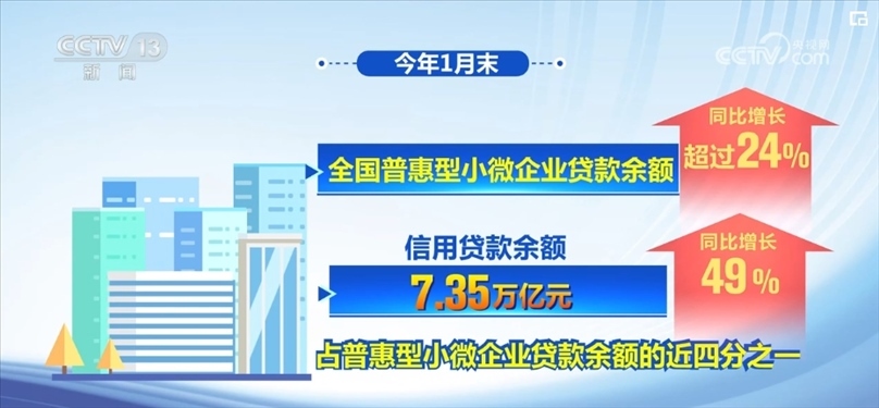 金融監(jiān)管總局的數(shù)字顯示,2024年1月末,全國普惠型小微企業(yè)貸款余額同比增長超過24%,其中,信用貸款余額7.35萬億元,同比增長49%,占普惠型小微企業(yè)貸款余額的近四分之一。