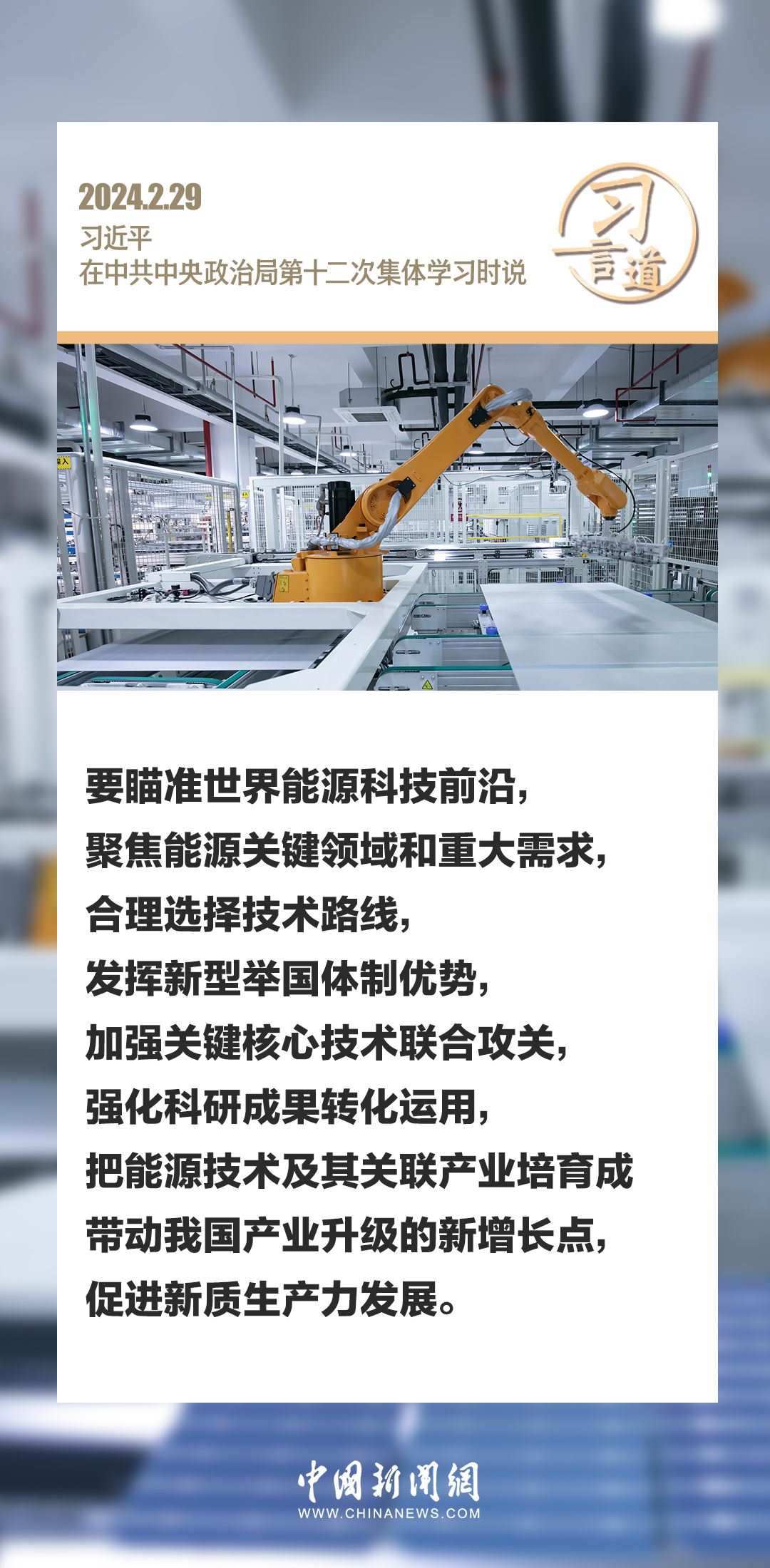中共中央政治局2月29日下午就新能源技術(shù)與我國的能源安全進行第十二次集體學習。中共中央總書記習近平在主持學習時強調(diào)——