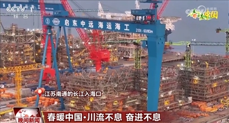 在江蘇南通的長江入???,一個(gè)個(gè)造型各異的“巨無霸”讓人震撼。眼前的這艘海上浮式生產(chǎn)儲油輪已經(jīng)進(jìn)入最后的模塊吊裝施工階段。與此同時(shí),自升式風(fēng)電安裝船、全球最大集裝箱船等重點(diǎn)高端產(chǎn)品不斷取得突破。長江入海口是終點(diǎn)也是起點(diǎn),所謂突破就是將終點(diǎn)當(dāng)成起點(diǎn),不停出發(fā)。