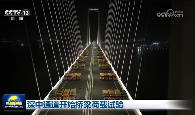 央視網(wǎng)消息(新聞聯(lián)播):今天(4月13日),粵港澳大灣區(qū)超級(jí)工程深中通道進(jìn)入橋梁荷載試驗(yàn)階段。在中山大橋,64輛大貨車停在橋梁跨中位置,檢測(cè)橋梁位移和應(yīng)力情況,測(cè)試動(dòng)力參數(shù)、汽車沖擊系數(shù)等。