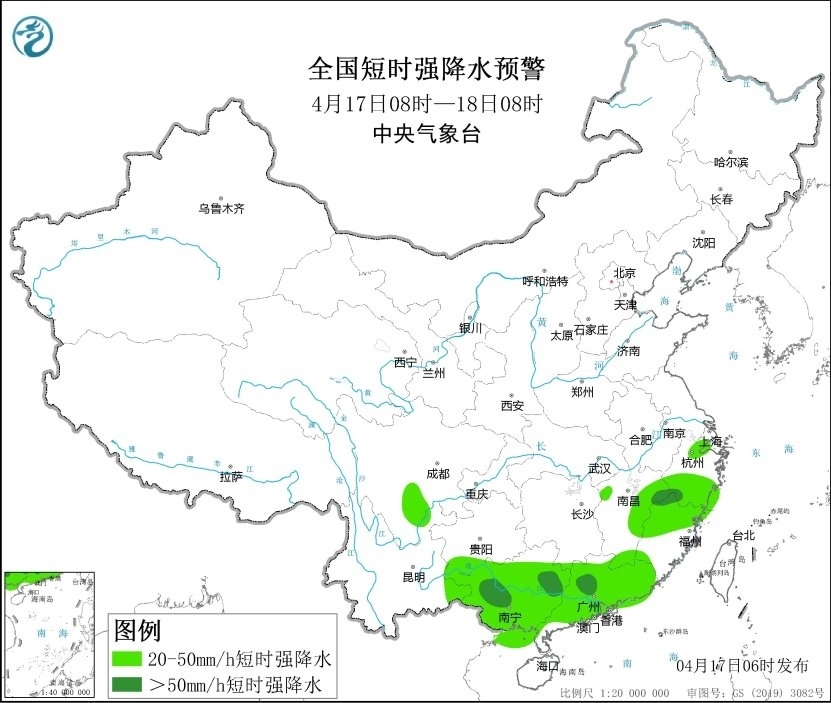 預(yù)計4月17日08時至18日08時,江西東北部、浙江南部、福建北部、廣西東部和西南部、廣東中東部和西北部等地的部分地區(qū)將有8-10級雷暴大風(fēng)或冰雹天氣,局地風(fēng)力可達11級以上;江西中北部和南部、浙江、福建、四川南部、貴州西南部、云南東南部、廣西、廣東等地的部分地區(qū)將有短時強降水天氣,最大小時雨量30-60毫米,局地可達70毫米以上。