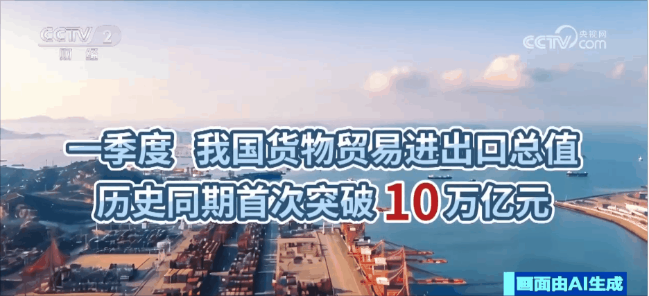 一季度,我國(guó)貨物貿(mào)易進(jìn)出口總值歷史同期首次突破10萬億元。
