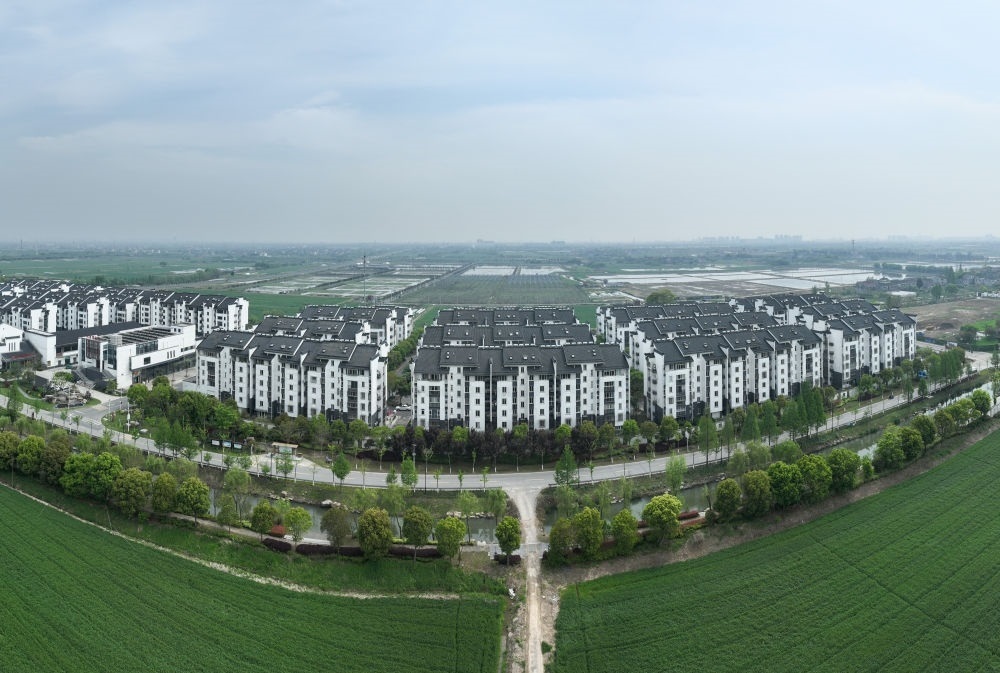 這是位于浙江省湖州市安置上岸漁民的義皋新村(2024年4月11日攝,無人機(jī)照片)。