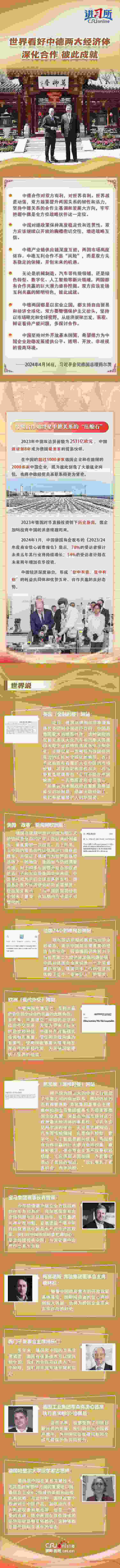 今年是中德建立全方位戰(zhàn)略伙伴關(guān)系10周年,也是朔爾茨就任德國總理以來第二次訪華。為進(jìn)入此次訪華隨行的經(jīng)濟代表團(tuán),德國企業(yè)界報名非常踴躍,最終拿到“登機牌”的都是各行業(yè)巨頭的高管,展現(xiàn)了德國商界對中國市場的信心,國際輿論對中德兩大經(jīng)濟體雙向奔赴作出積極解讀。