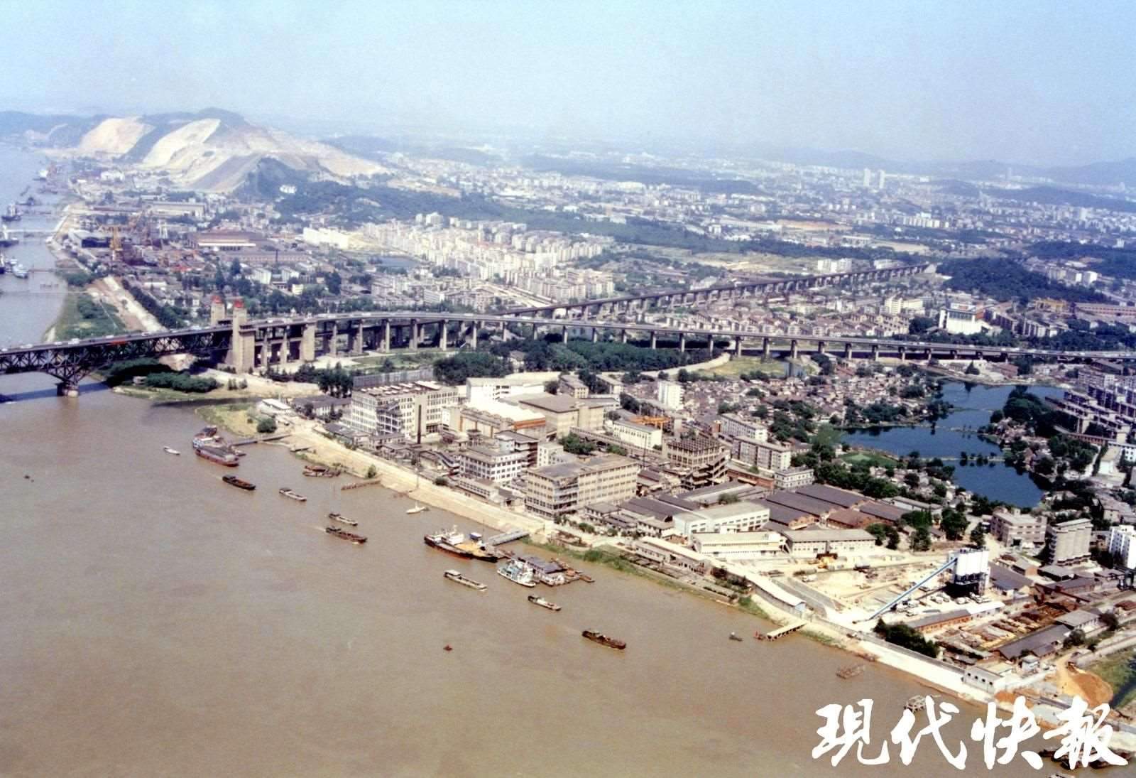 上世紀(jì)八九十年代從長(zhǎng)江大橋眺望幕府山