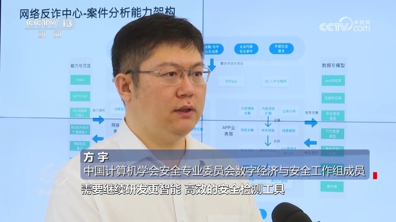 方宇:“下一步,針對涉詐APP的發(fā)現(xiàn),需要繼續(xù)研發(fā)更智能、高效的安全檢測工具,建立涉詐APP的黑名單數(shù)據(jù)庫。另外,結(jié)合一些新型、智能化的技術(shù)手段,通過對網(wǎng)絡(luò)流量分析,及時(shí)發(fā)現(xiàn)詐騙流量,并通過公安、網(wǎng)信、金融、市場監(jiān)管等部門進(jìn)一步加強(qiáng)聯(lián)動(dòng)、信息及時(shí)共享、及時(shí)進(jìn)行阻斷,多措并舉,共同努力,形成合力,打擊涉詐APP?!?/p>