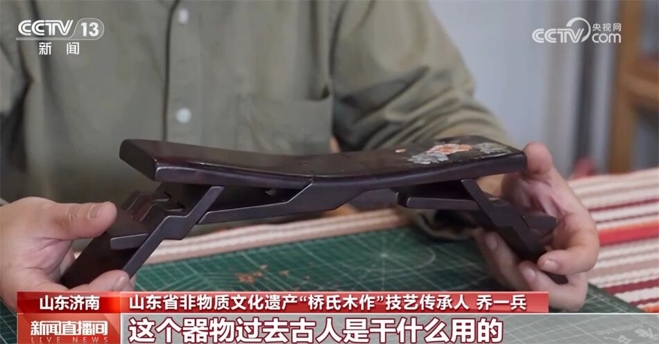 山東省非物質(zhì)文化遺產(chǎn)“橋氏木作”技藝傳承人喬一兵介紹:“它本身是一整塊木頭六個面,通過鋸和鑿形成一個器物。這個器物過去古人是干什么用的?當(dāng)枕頭用的,也可以當(dāng)?shù)首佑?,它最大的特點(diǎn)是可以折疊,攜帶非常方便,傳說是魯班發(fā)明的。和眾多的優(yōu)秀的傳統(tǒng)技藝一樣,它深層次代表的是中國的一些思想、一些哲學(xué)、一些文化在里邊,魯班枕的核心是平衡和和諧,我覺得我很有必要把它傳承下來,發(fā)揚(yáng)光大?!?/p>
