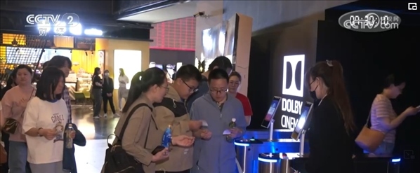 記者在北京五棵松的一家影院看到,多個(gè)放映廳檢票處觀眾正排著長隊(duì)檢票入場。