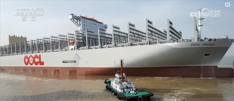央視網消息:5月7日,又一艘全球最大裝箱量級的集裝箱船在海事部門的護航下,從長江江蘇南通段出江試航。此次,試航集裝箱船長399.99米、寬61.3米,滿載時相當于240多列火車的裝載量。