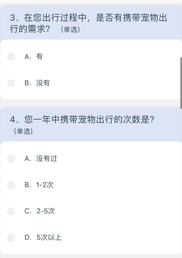 問卷涉及寵物運(yùn)輸服務(wù)定價、非養(yǎng)寵人士建議等