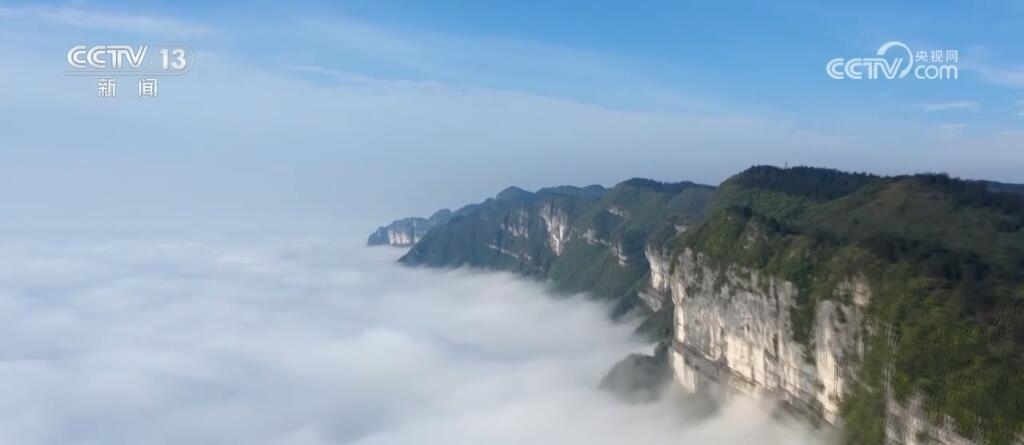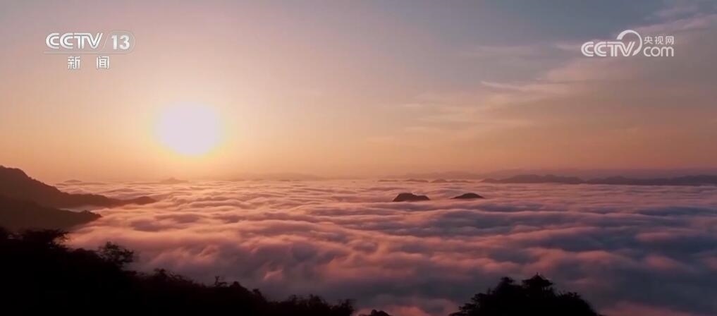 重慶彭水:日出霞光照萬丈 百里云海飛瀑來