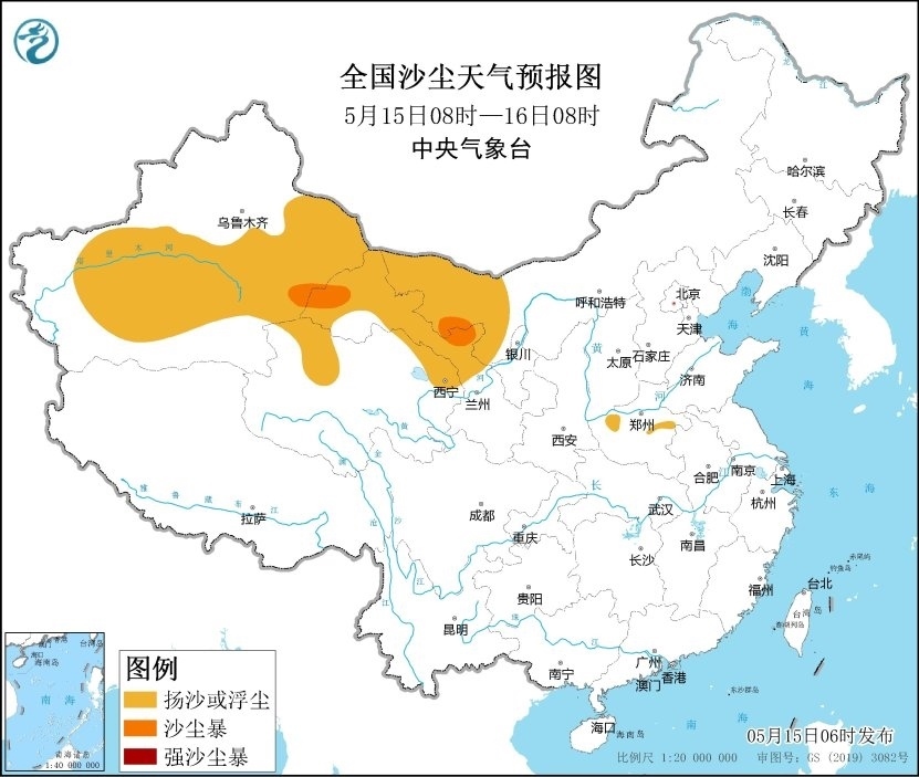 央視網(wǎng)消息:據(jù)中央氣象臺(tái)網(wǎng)站消息,預(yù)計(jì),5月15日08時(shí)至16日08時(shí),新疆南部和東部、甘肅西部、內(nèi)蒙古西部、青海北部以及河南中部等地有揚(yáng)沙或浮塵天氣,其中新疆東部、甘肅西部、內(nèi)蒙古西部等地局地有沙塵暴,中央氣象臺(tái)5月15日06時(shí)繼續(xù)發(fā)布沙塵暴藍(lán)色預(yù)警。