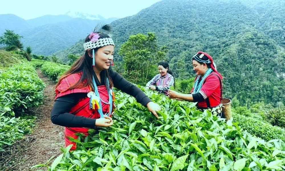 茶廠里人頭攢動(dòng)、歡聲笑語,珞巴族女子穿梭在茶樹之間,單手輕輕一旋,嫩葉飄然入簍,不一會(huì)兒,簍里已是一片青綠。