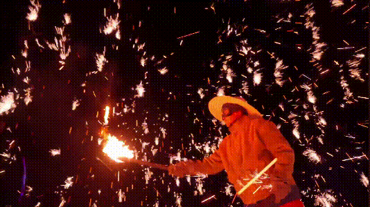 “長城鐵花”是長城腳下的人們在農(nóng)閑時表演來祭祀、娛樂、祈求風(fēng)調(diào)雨順、生活美滿的一種民間文藝活動。當鐵水溫度達到1600至1800攝氏度時,用木勺擊打鐵水,鐵花四濺,猶如天女散花,甚是絢麗壯觀。
