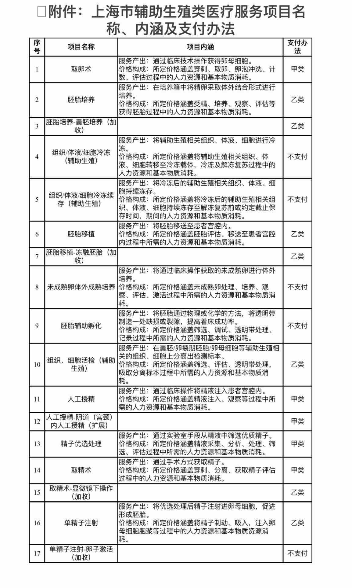 前期,根據(jù)國(guó)家醫(yī)保局有關(guān)立項(xiàng)指南要求,綜合考慮醫(yī)院發(fā)展和患者負(fù)擔(dān),上海市醫(yī)保局對(duì)我市現(xiàn)行輔助生殖類(lèi)醫(yī)療服務(wù)項(xiàng)目進(jìn)行規(guī)范,優(yōu)化整合為“取卵術(shù)”等17個(gè)輔助生殖類(lèi)醫(yī)療服務(wù)項(xiàng)目。其中,12個(gè)項(xiàng)目納入上海醫(yī)保支付范圍,涵蓋取卵術(shù)、取精術(shù)、人工授精、胚胎培養(yǎng)、胚胎移植等必要醫(yī)療性輔助生殖技術(shù)。