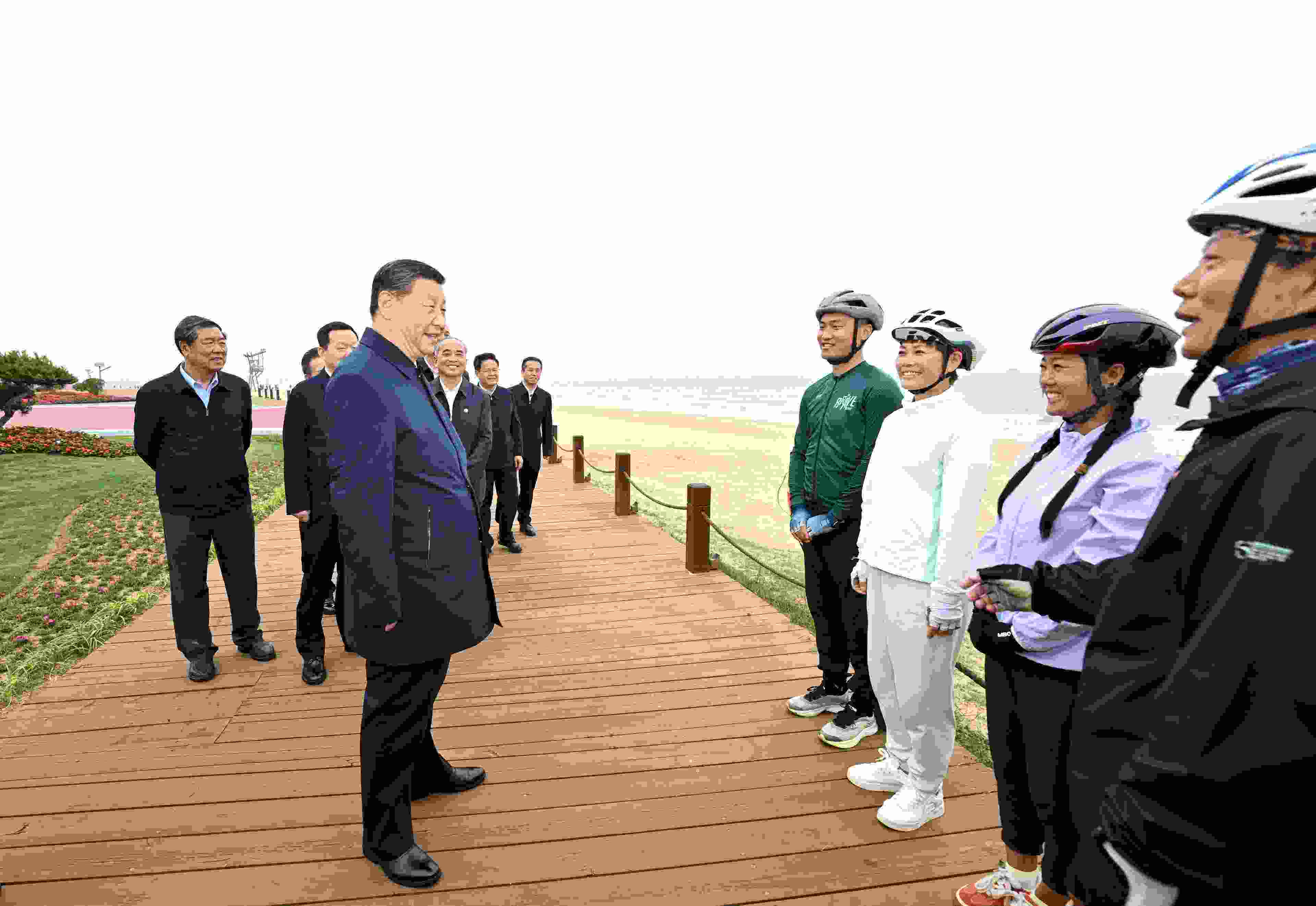 海風(fēng)輕拂,碧海藍(lán)天間,一條綠道蜿蜒向前。5月22日下午,習(xí)近平總書記來到山東日照陽(yáng)光海岸綠道,了解當(dāng)?shù)丶訌?qiáng)海岸線生態(tài)保護(hù)修復(fù)、提高人民生活品質(zhì)等情況。