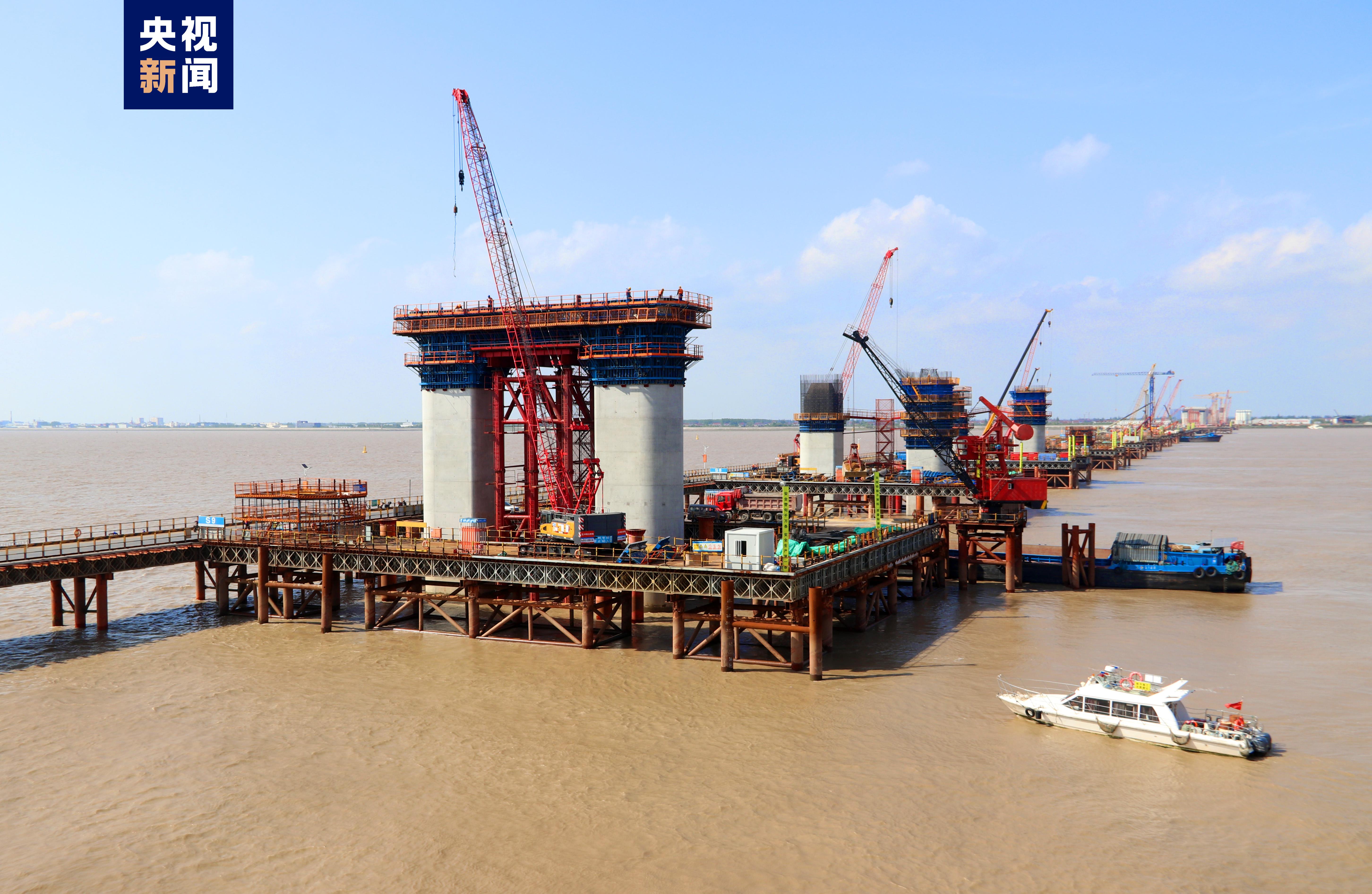 5月26日,隨著最后一車混凝土澆筑,滬渝蓉高鐵崇啟公鐵長江大橋主橋S9號(hào)墩蓋梁成功澆筑,標(biāo)志著大橋水中首個(gè)門式橋墩建成。據(jù)介紹,S9號(hào)墩蓋梁橫橋向長30.5米、縱橋向?qū)?.0米、高4.0米,混凝土方量652.95立方米,采用落地鋼管支架一次澆筑成型。