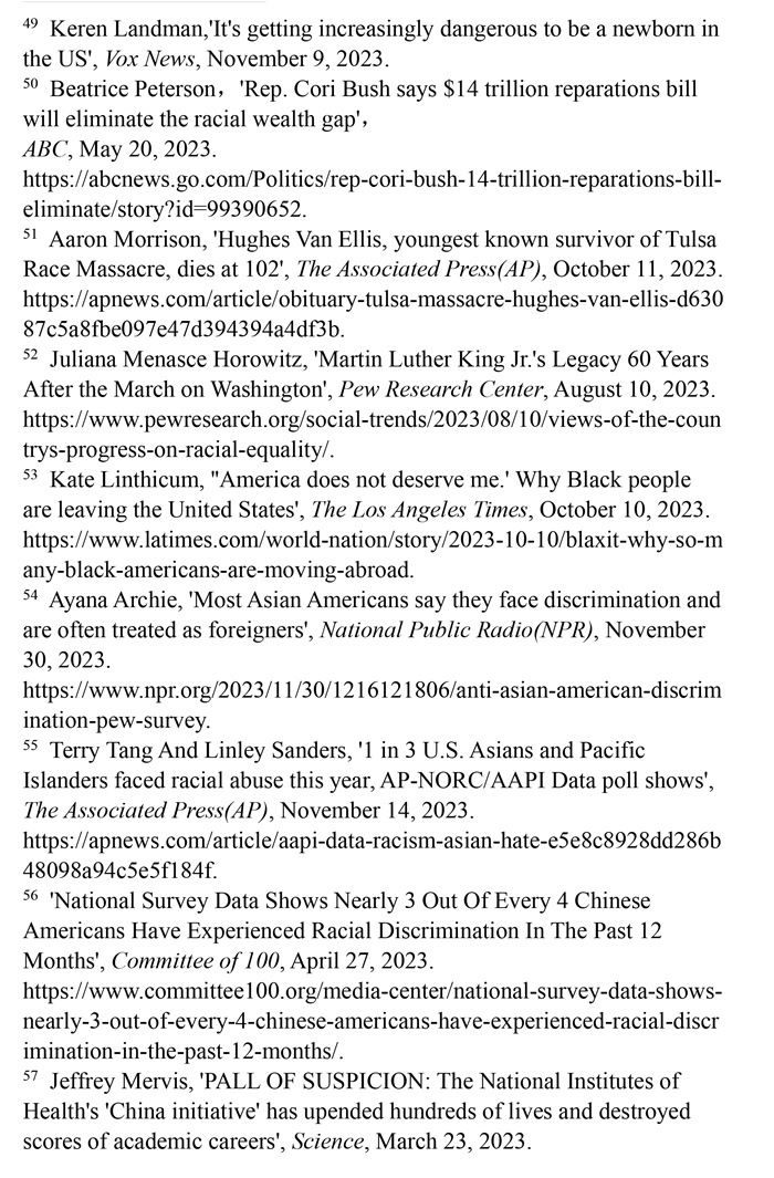 對華裔科學家的迫害仍在持續(xù)。雖然美國政府針對華裔科學家的“中國行動計劃”被暫停,但該計劃帶來的深遠影響猶在,眾多華裔科學家仍然有強烈的不安全感。美國《科學》雜志2023年3月23日刊發(fā)文章,講述了“中國行動計劃”對華裔科學家的迫害。在被美國國立衛(wèi)生研究院調(diào)查的246人中,103人失去工作,超過五分之一的人被禁止在4年內(nèi)申請國立衛(wèi)生研究院資助,給他們的學術(shù)生涯帶來重大打擊。這246人中有81%的科學家是亞裔。(注57)普林斯頓大學、哈佛大學和麻省理工學院對近1400名在美國大學擔任終身教職的華裔美國人的調(diào)查顯示,72%的人表示沒有安全感,42%的人害怕在美國開展研究。(注58)
