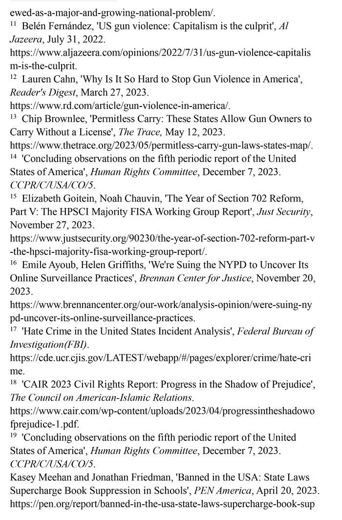 政府濫用權(quán)力監(jiān)控公民隱私。聯(lián)合國人權(quán)事務委員會指出,美國《涉外情報監(jiān)視法》第702條的范圍過于寬泛,該法不僅允許美國執(zhí)法人員監(jiān)視外國人的電子通信,執(zhí)法人員還可能利用法律漏洞在沒有搜查令的情況下獲取大量美國公民的通訊信息(即“后門搜查”),并且缺乏明確透明的監(jiān)督機制。(注14)美國眾議院情報委員會2023年11月16日發(fā)布的報告顯示,美國聯(lián)邦調(diào)查局將《涉外情報監(jiān)視法》第702條規(guī)定轉(zhuǎn)用于進行國內(nèi)監(jiān)控,“廣泛而持續(xù)地”監(jiān)控國會議員、國會競選活動捐助者以及反種族主義抗議者的通訊。(注15)布倫南司法中心網(wǎng)站2023年11月20日報道,十幾年來,紐約警察局濫用社交媒體從事非法活動,包括監(jiān)視公共集會、在沒有證據(jù)的情況下跟蹤公民個人及其聯(lián)系人等,而這些行為并未受到監(jiān)督和問責。(注16)