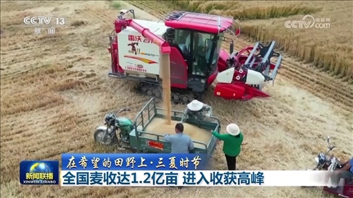 央視網(wǎng)消息(新聞聯(lián)播):農(nóng)業(yè)農(nóng)村部最新數(shù)據(jù)顯示,當(dāng)前全國麥?zhǔn)者_(dá)1.2億畝,進(jìn)度過三成半,已進(jìn)入收獲高峰。