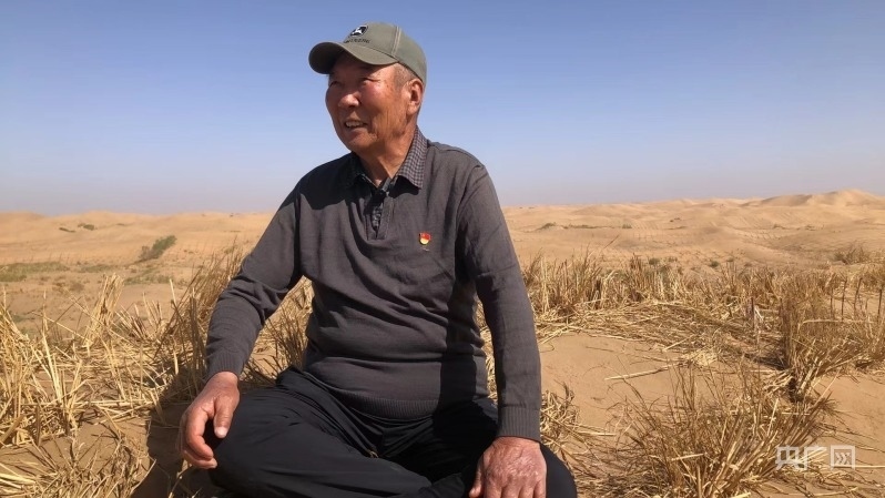 陳寧布老人講述與沙魔抗爭的故事(央廣網(wǎng)見習記者 邵玉琴 攝)
