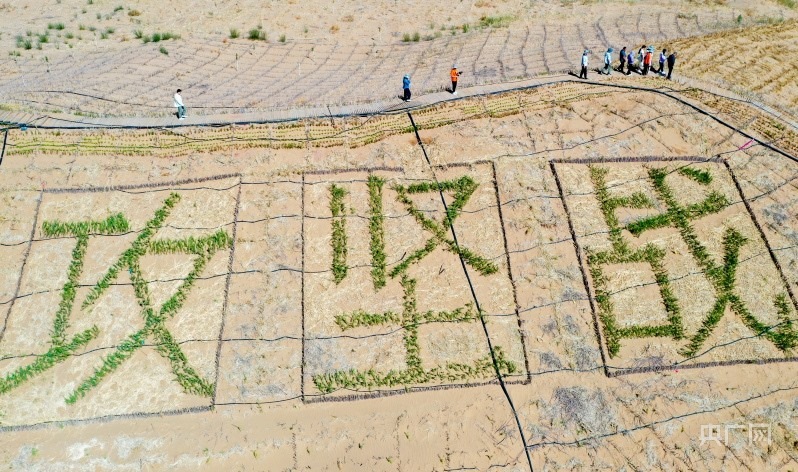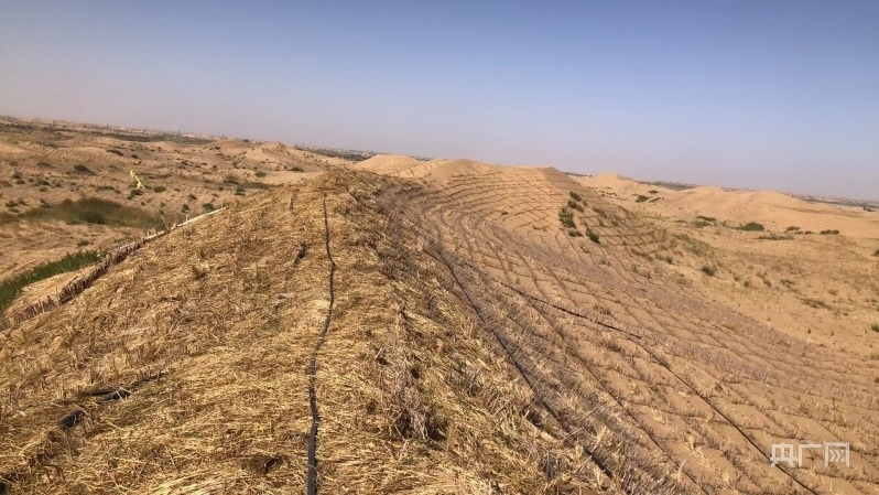 經(jīng)過幾代人艱苦卓絕地斬“黃龍”、斗風沙的大會戰(zhàn),曾被稱為“死亡之?!钡膸觳计渖衬缃衤肪W(wǎng)縱橫交錯,通過設置沙障、人工造林、飛播造林,沙漠經(jīng)濟煥發(fā)出勃勃生機。