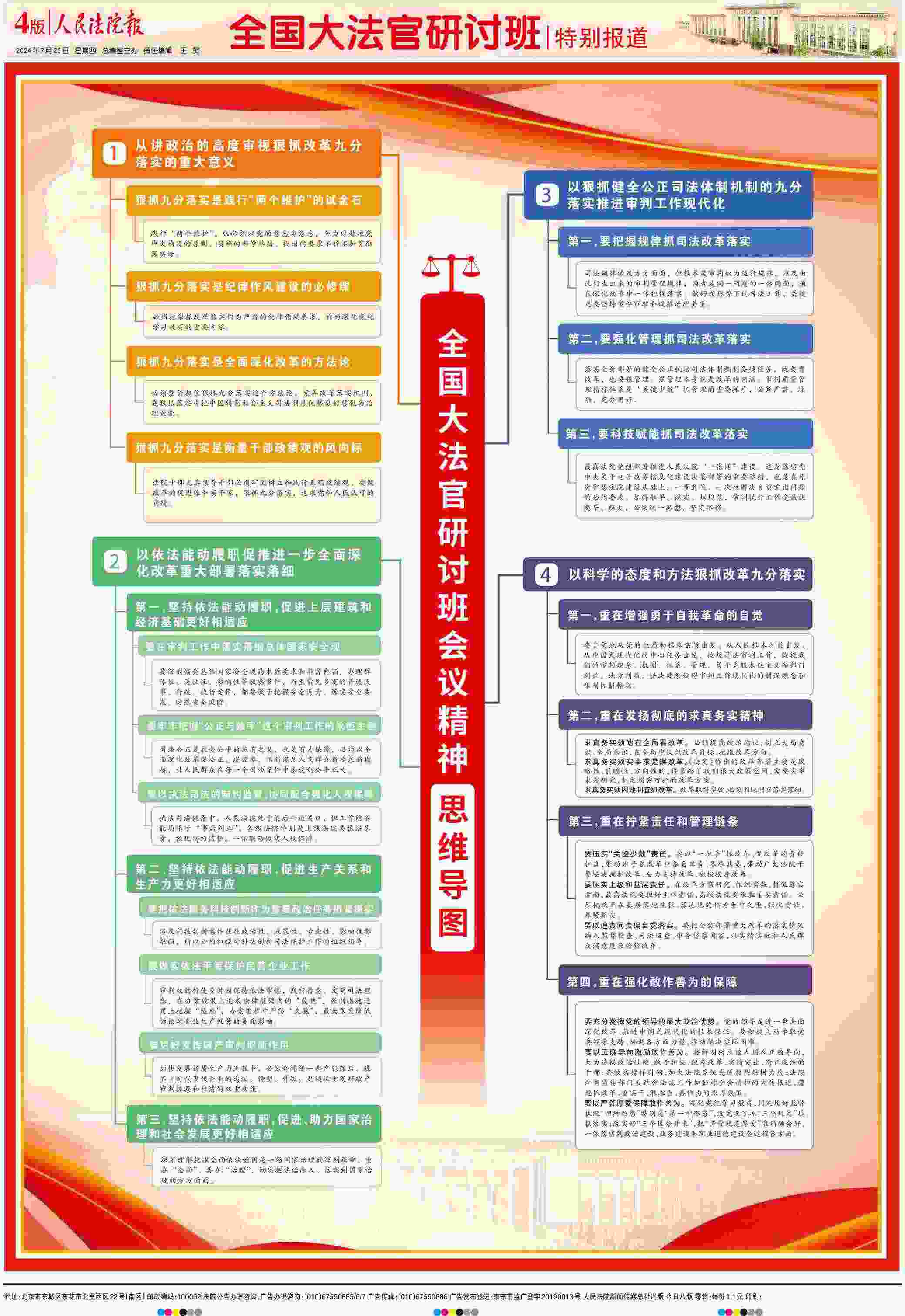 7月24日,全國大法官研討班舉行。此次研討班的主要任務(wù)是:堅(jiān)持以習(xí)近平新時(shí)代中國特色社會(huì)主義思想為指導(dǎo),全面貫徹落實(shí)黨的二十大和二十屆二中、三中全會(huì)精神,深入貫徹習(xí)近平法治思想,認(rèn)真學(xué)習(xí)領(lǐng)會(huì)黨中央關(guān)于進(jìn)一步全面深化改革的戰(zhàn)略部署,深化思想認(rèn)識(shí),狠抓九分落實(shí),加快推進(jìn)審判工作現(xiàn)代化,努力為以中國式現(xiàn)代化全面推進(jìn)強(qiáng)國建設(shè)、民族復(fù)興偉業(yè)提供有力司法服務(wù)保障。