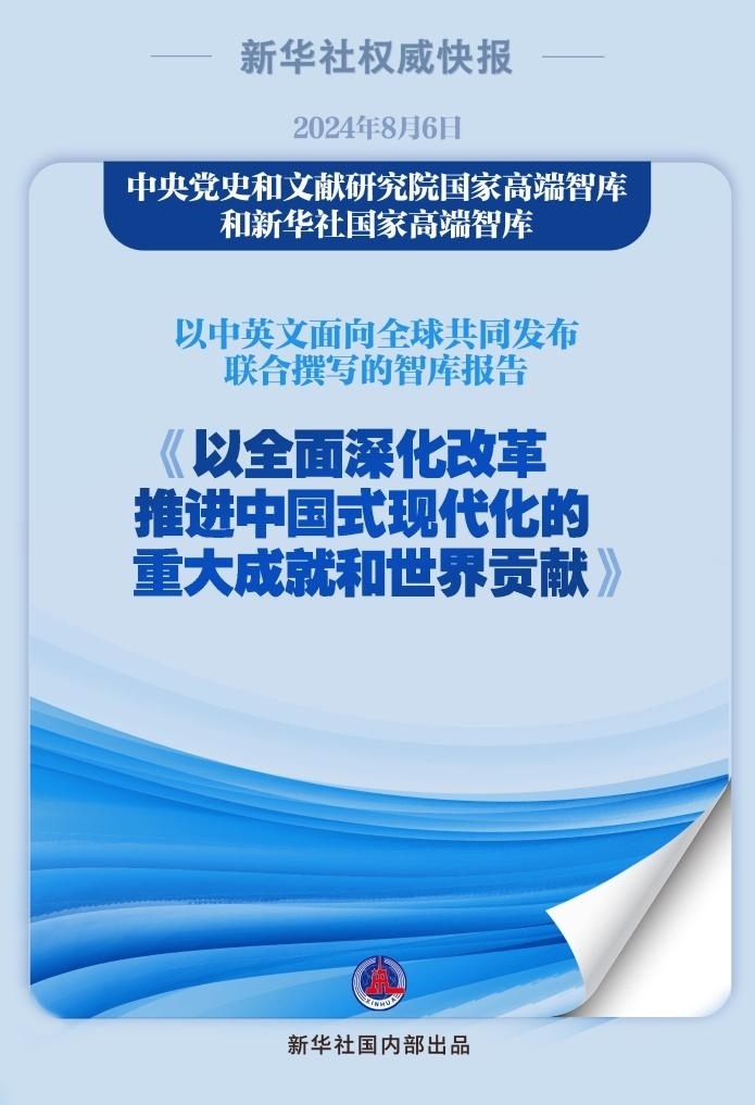 “紅廳論壇:讀懂中國共產黨二十屆三中全會”主題研討會8月6日在中國共產黨歷史展覽館紅色大廳舉行。會上,中央黨史和文獻研究院國家高端智庫和新華社國家高端智庫以中英文面向全球共同發(fā)布聯(lián)合撰寫的智庫報告《以全面深化改革推進中國式現(xiàn)代化的重大成就和世界貢獻》。