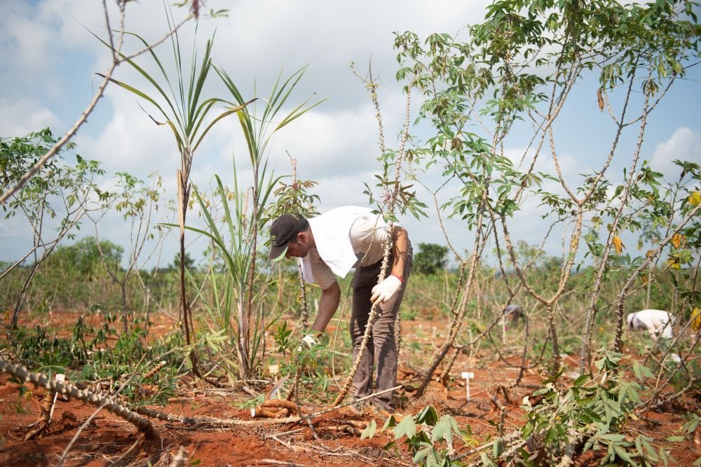 2020年3月24日,在位于海南省的中國熱帶農(nóng)業(yè)科學(xué)院的一處基地,來自埃及的副教授哈馬達·穆罕默德·哈?!ぐ⒉范爬瓍⒓又袊鵁峥圃簾釒锛夹g(shù)研究所木薯育種團隊開展的木薯選育新技術(shù)培訓(xùn)。