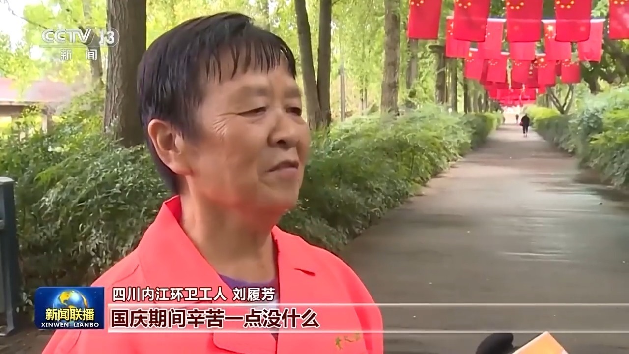 四川內(nèi)江環(huán)衛(wèi)工人 劉履芳:國慶期間辛苦一點(diǎn)沒什么,希望市民過一個開心、整潔的國慶假期。