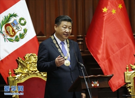 當(dāng)?shù)貢r(shí)間2016年11月21日,國家主席習(xí)近平在秘魯國會(huì)發(fā)表題為《同舟共濟(jì)、揚(yáng)帆遠(yuǎn)航,共創(chuàng)中拉關(guān)系美好未來》的重要演講。新華社記者 鞠鵬 攝