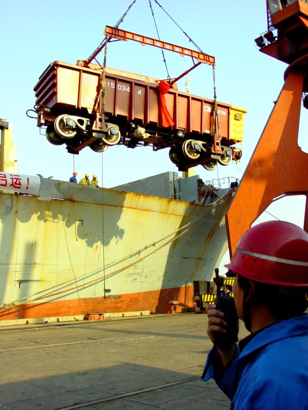 2003年10月23日,中國向巴西出口的首批鐵路貨車從上海張華浜港啟運(yùn)。這是中國首次向南美出口鐵路貨車。