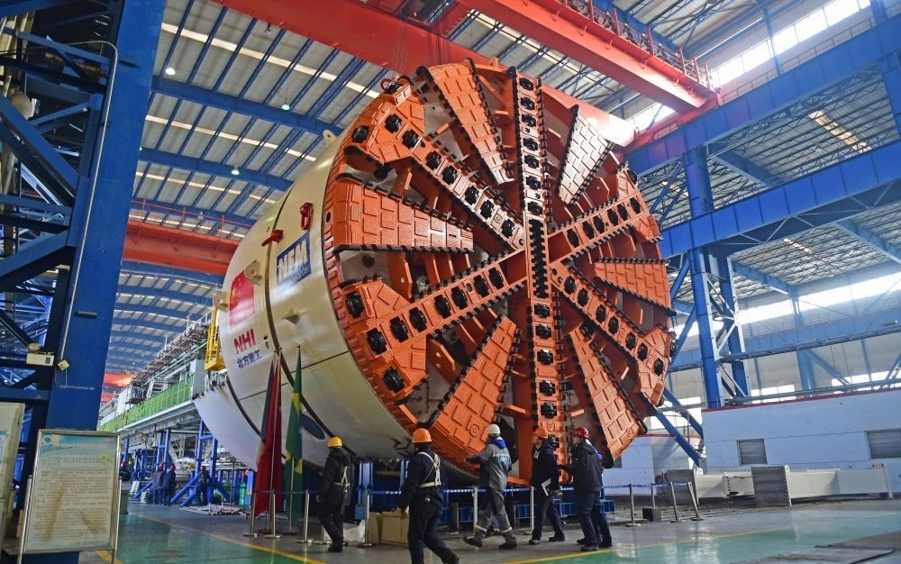 這是在遼寧沈陽北方重工集團(tuán)拍攝的即將出口到巴西圣保羅的盾構(gòu)機(jī)(2016年1月28日攝)。