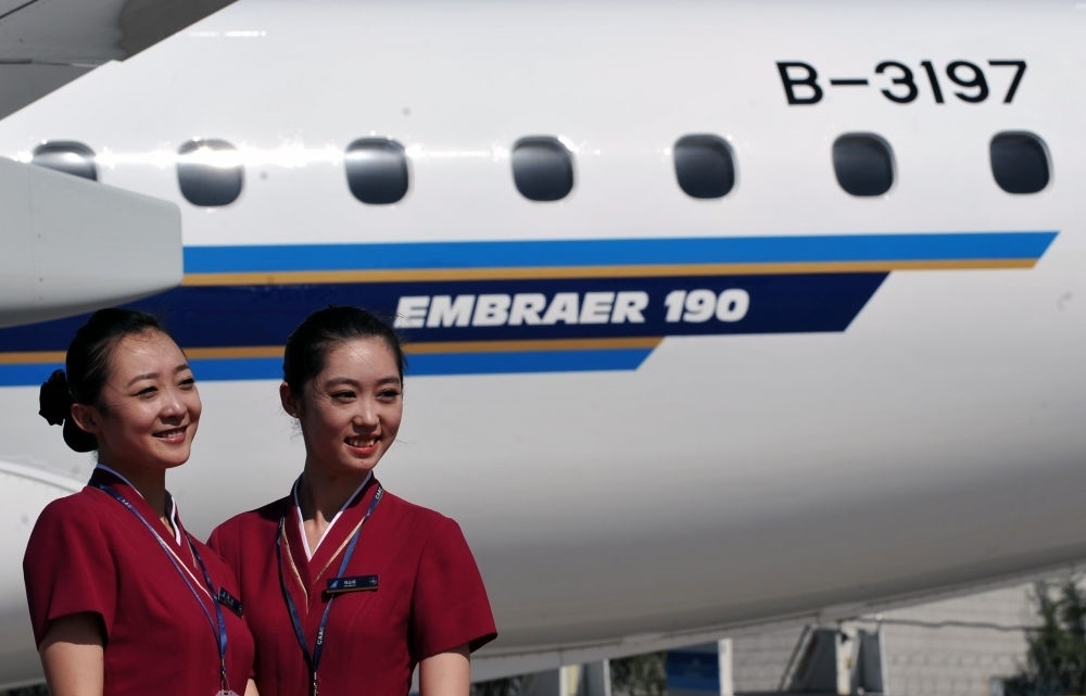 2011年8月16日,巴西航空工業(yè)公司生產(chǎn)的EMB190噴氣式飛機(jī)抵達(dá)烏魯木齊國際機(jī)場,正式加入南航新疆分公司機(jī)隊(duì)。這是南航空乘人員在飛機(jī)前合影。